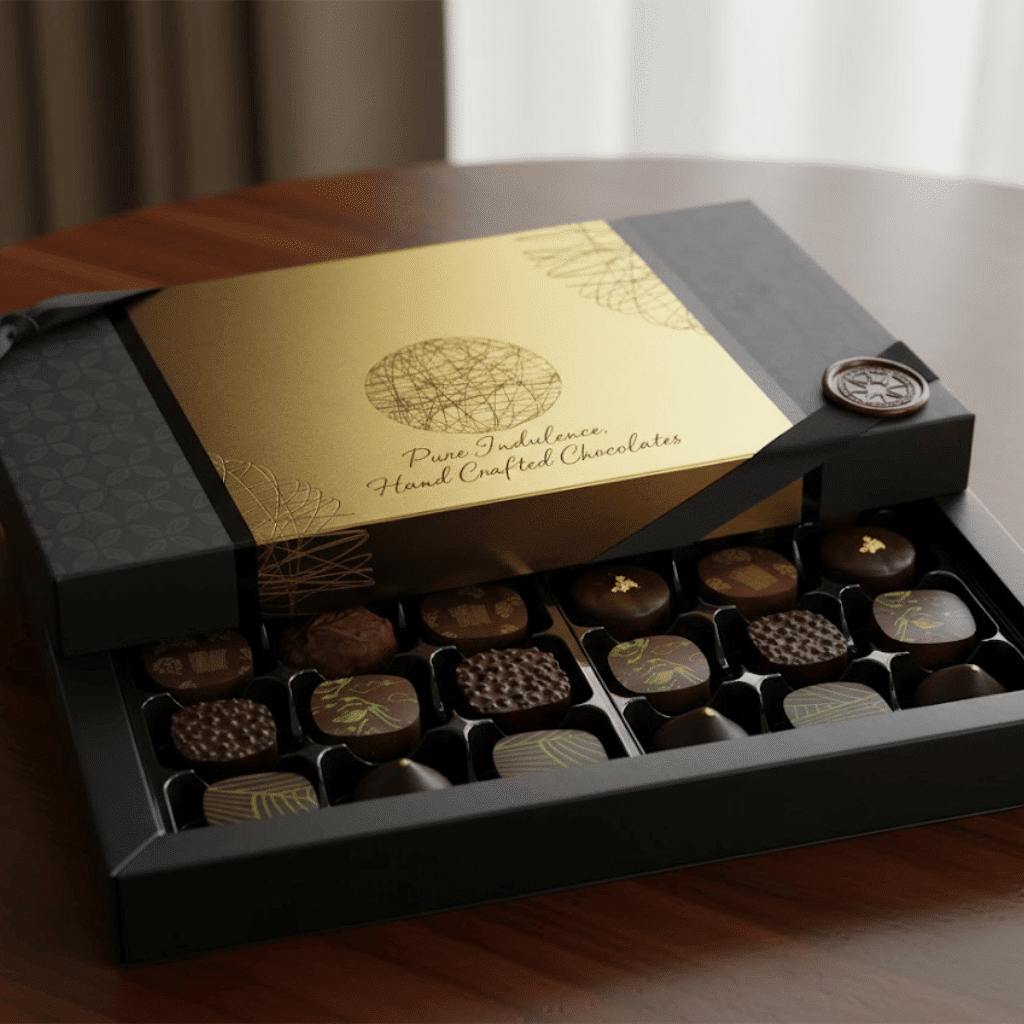 Whether you’re presenting artisanal truffles or launching a premium chocolate brand, we craft packaging that elevates your product — featuring magnetic closures, die-cut windows, foil stamping, embossing, and other premium finishes.